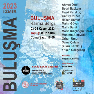 Küratörlüğünü Ressam Mustafa Albayrak'ın üstlendiği "Buluşma Karma Sergisi" 3-25 Kasım 2023 tarihlerinde İzmir Eskiiz Sanat Galerisinde sanatseverlerle buluşacak.